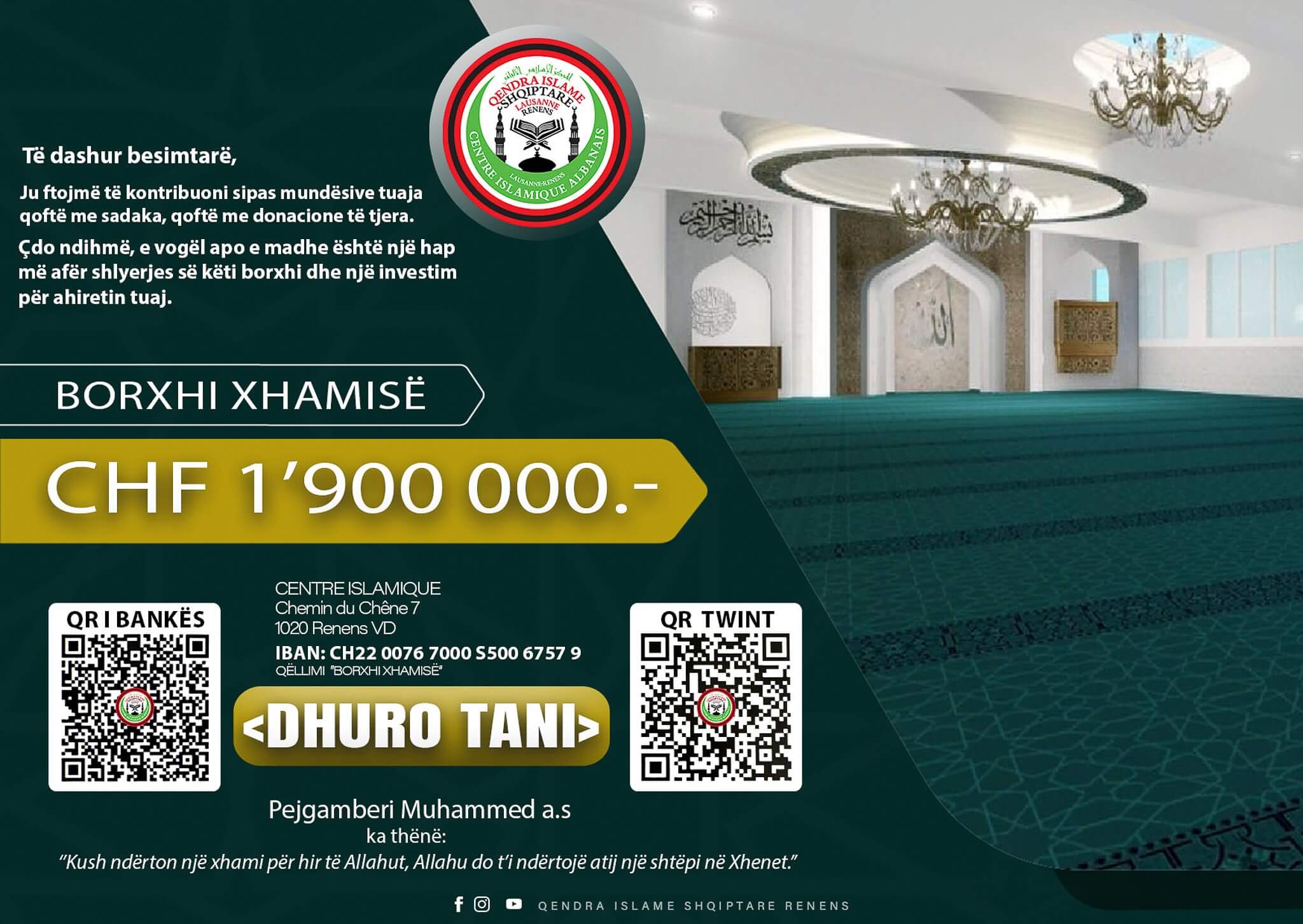 Tani është koha që së bashku ta çojmë këtë projekt deri në fund, duke e çliruar xhaminë nga borxhi dhe duke e siguruar atë për brezat që do të vijnë.