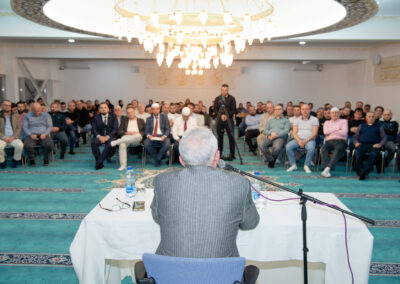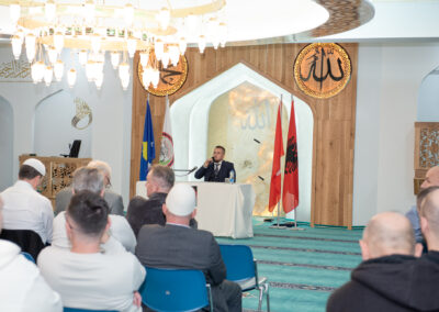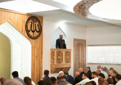 Ne mirëpresim të gjithë besimtarët, pa dallim, në një ambient të mbështetur mbi respektin e ndërsjellë, paqen dhe bashkëpunimin. Xhamia jonë synon të jetë një hapësirë adhurimi, mësimi dhe afërsie njerëzore, ku secili gjen vendin dhe qetësinë e tij shpirtërore.